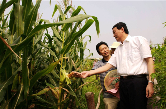 图为副省长徐明华(右)视察我县万亩玉米高产示范片(杨坚 摄影)