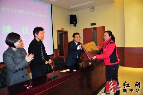 本网讯(通讯员 肖剑秋 陈剑平) 3月26日,阳光明媚,县人民政府副县长兰平代表邵阳市爱国卫生运动委员会为崀山风景名胜区管理处荣获“市文明卫生单位”授牌,授牌仪式在崀管处多媒体大厅举行,会议由县爱卫委主任周前国主持。