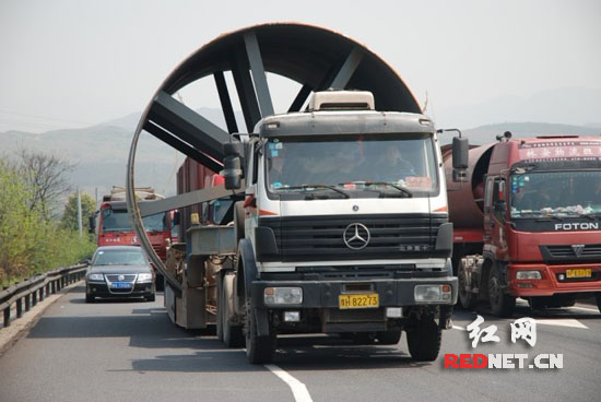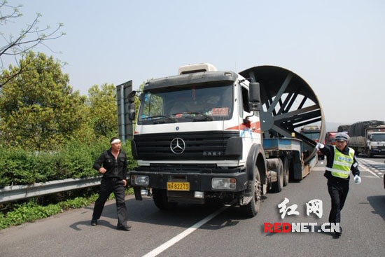 红网郴州4月5日讯(通讯员 李静)4月4日,一台超长“巨无霸”半挂车辆亮相京港澳高速,湖南耒宜高速交警及时疏导交通,为其快速引导安全通行,及时消除安全隐患,确保路面平安、交通畅通。 上午11点10分,耒宜大队宜章中队民警巡逻至京港澳高速1829KM往南处时,发现前方车辆行驶十分缓慢,并开始造成拥堵现象,民警立刻通过喊话,提示路面车辆谨慎安全驾驶,保持有效安全车距。 当民警继续驱车前往堵塞现场时,发现前方一台牌号为豫H82273的半挂车装载着一个圆型桶状大铁皮,在缓慢向前行驶,差不多占了两个车道,存在着极大的交通安全隐患。民警立即通过喊话告知驾驶员将车驾驶到前方1公里的宜章服务区内停车接受检查。 经询问该车驾驶员张某得知,这台半挂车车身长为30米,宽5米,运载的桶状铁皮为造纸桶体,是运往广东某造纸厂的机器设备。经民警检查后发现,该车已办理了超限运输证。为消除安全隐患,民警要求驾驶员在车辆在后方悬挂反光标志设施。经过近1小时,民警顺利将该车护送出了辖区,确保了辖区的行车安全。 |