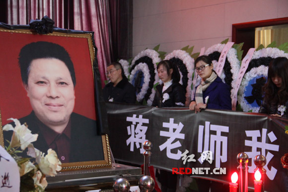 12月13日下午,宁乡县,数百人聚集在该县殡仪馆为一名山村小学的老校长蒋小贵送行。