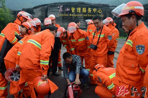 会后,全体专业打火队员全副武装,身穿防火服,在消防器材销售代理公司的技术员带领下,把从南宁新购进的16台国内最先进的风力灭火机进行分组操作,现场学习了森林山火风力灭火器的使用和维护。