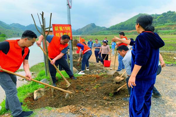 “今年4月,我们公司购买了树苗,并组织帮扶责任人同公司领导职工共30余人在腊元村双江河沿河一线开展植树活动,活动不仅为稳固河堤打下了坚实基础,也给美丽乡村增添了一抹新绿,开启了绿色扶贫新篇。”该村帮扶单位新宁县联通公司总经理刘贵春说道。