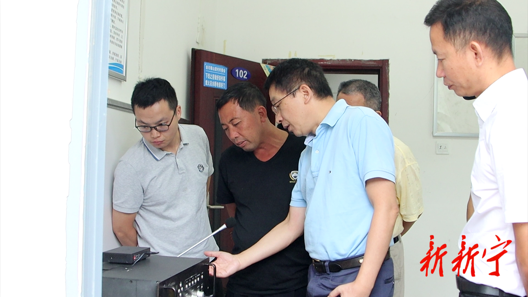 图为省广播电视局党组副书记、副局长、一级巡视员毛良才(右二)在山渡村调研应急广播体系建设工作。