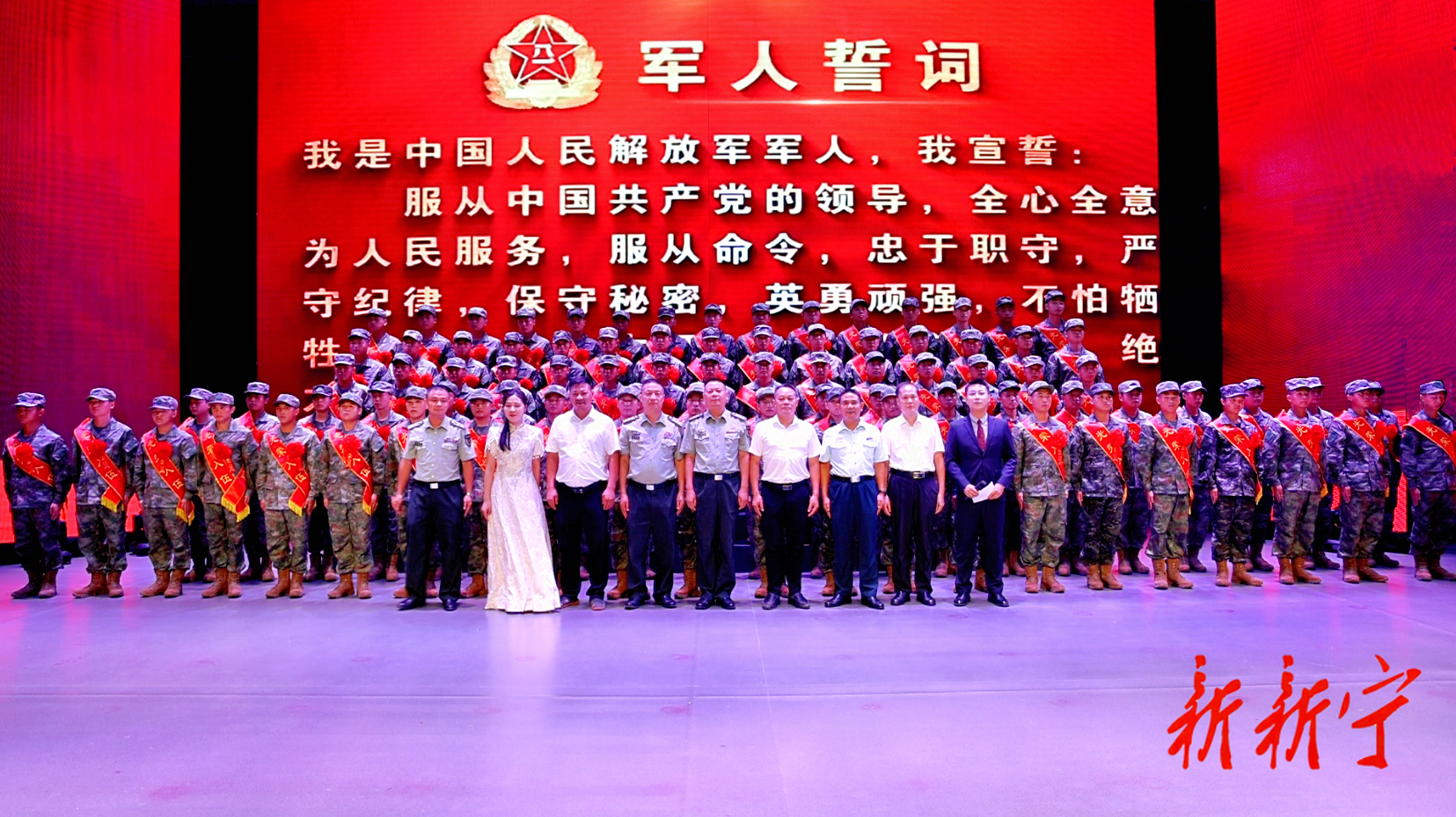 活动现场还为立功受奖的军人家庭颁发荣誉证书,并向军属代表颁授光荣牌,彰显社会对军人及其家庭的尊崇与关怀。最后,全体新兵面向军旗庄严宣誓,誓言铿锵有力、字字千钧,表达了忠诚于党、报效国家的坚定决心。