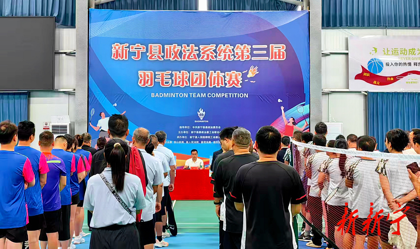 10月17日,新宁县政法系统第三届羽毛球团体赛在县公安局警营文化中心激情开赛。来自县委政法委、公安、检察、法院等政法系统的7支比赛队伍、70余名运动员以球会友、以赛聚力,在赛场上书写体育运动的热血篇章。县委常委、政法委书记陈挺宣布比赛开幕。