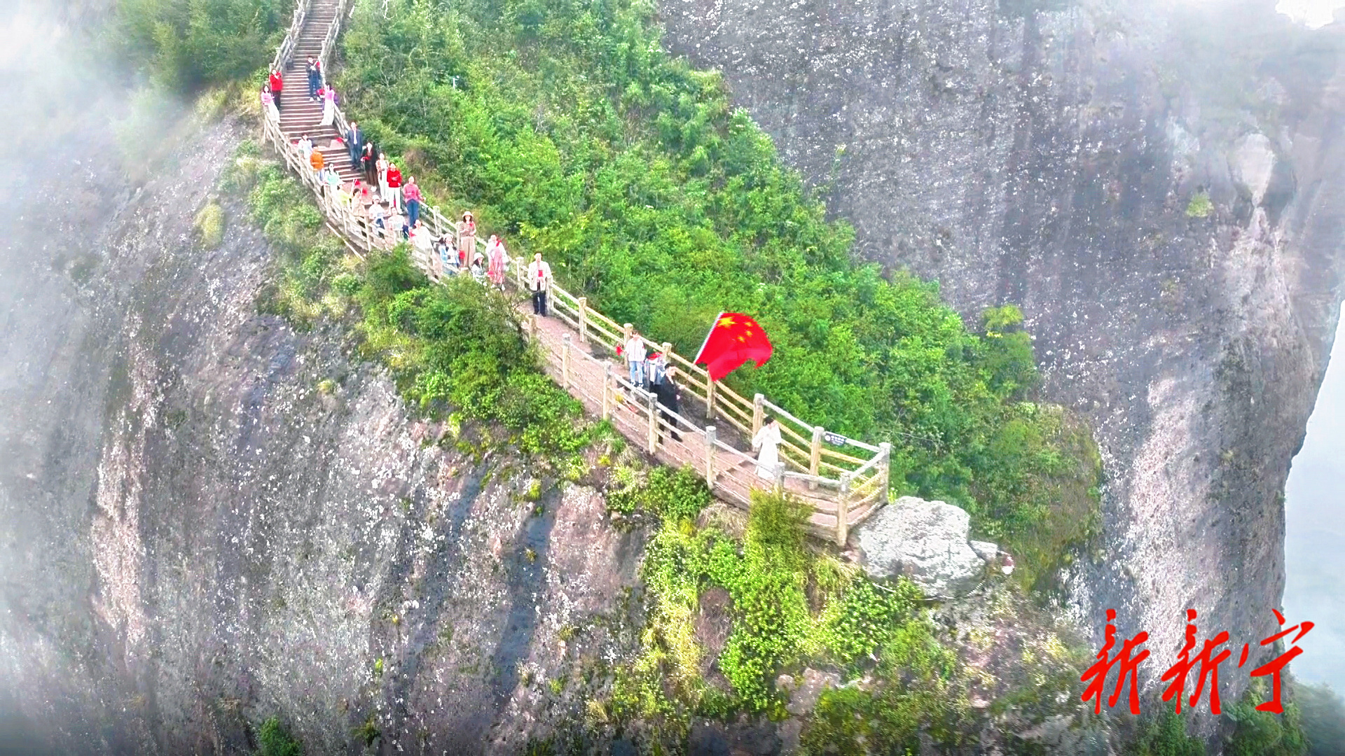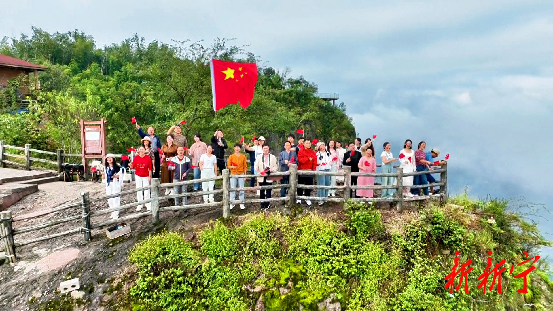 早已准备好的合唱团成员率先开口,饱含深情地唱响《我和我的祖国》,游客们纷纷自发加入,跟随旋律挥舞着国旗,摇摆着身体,歌声从零星附和变成整齐嘹亮的大合唱。歌声与山风共鸣,热情与赤壁呼应,勾勒出一幅山河盛景与家国情怀交相辉映的动人画卷。