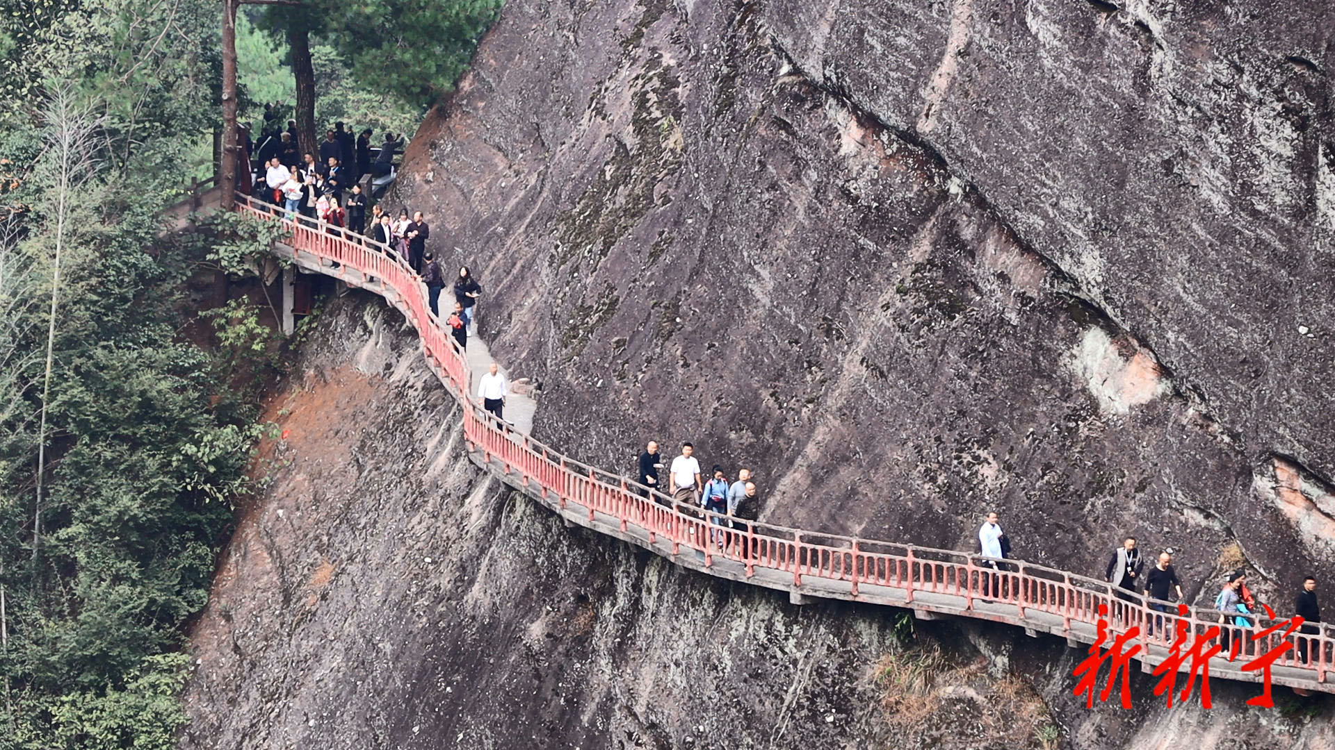 时值深秋,崀山丹霞红岩与苍翠植被相映成趣,气候宜人,正是赏景最佳时节。10月24日至25日,来自台湾、永州等地游客团走进崀山,在丹霞奇观与秋日盛况中览胜观景,参与妙趣横生旅游主题活动,错峰游、入境游与金秋游持续释放蓬勃活力。