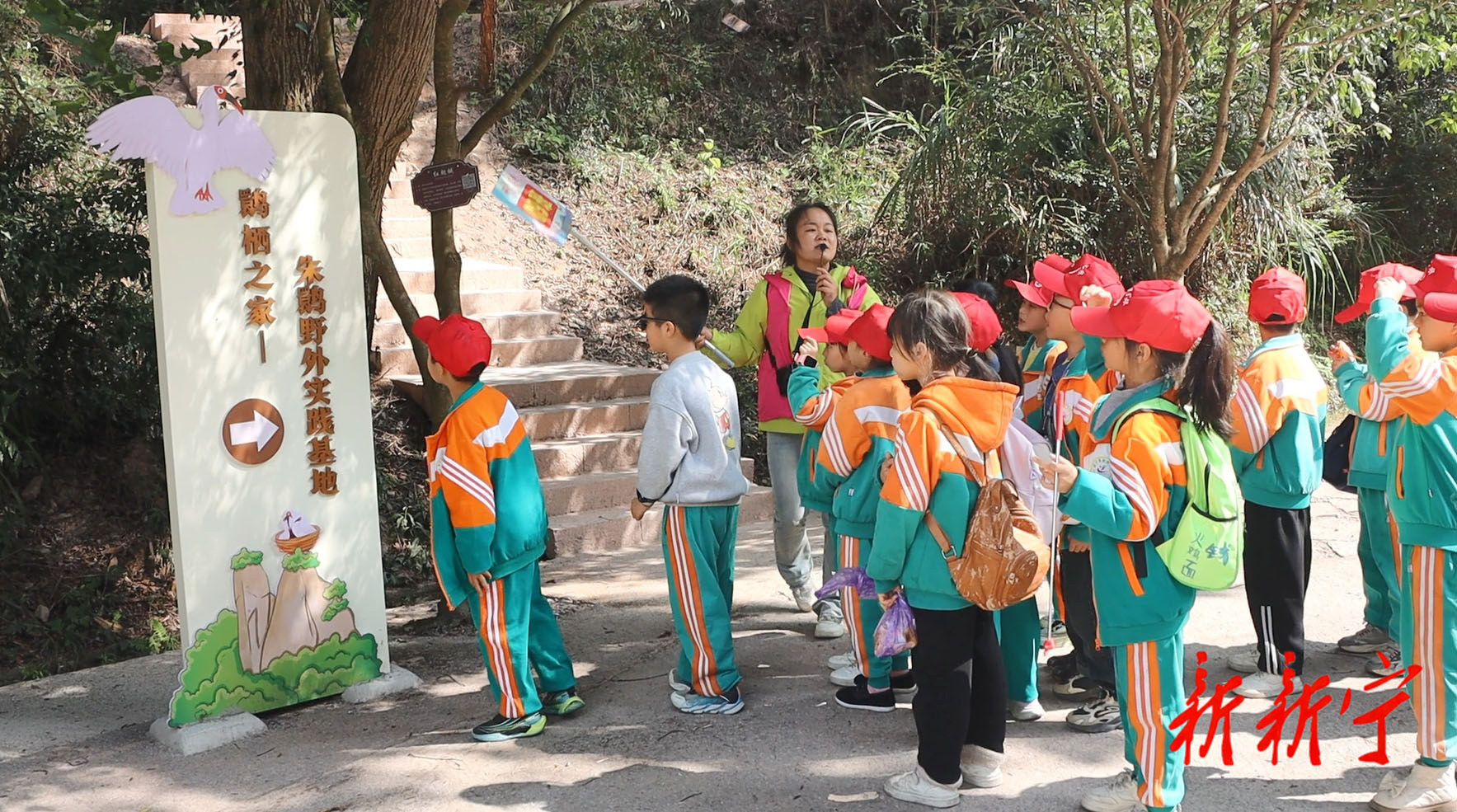解放小学带队老师 伍欣:我们开展这次崀山朱鹮研学活动的核心是“走出课堂 知行合一”,让学生们的知识立体化、能力综合化,崀山的朱鹮生态、独具特色的丹霞地质地貌和丰富的历史文化,也增强了学生们对祖国壮丽山河的热爱、对生物多样性的珍视。