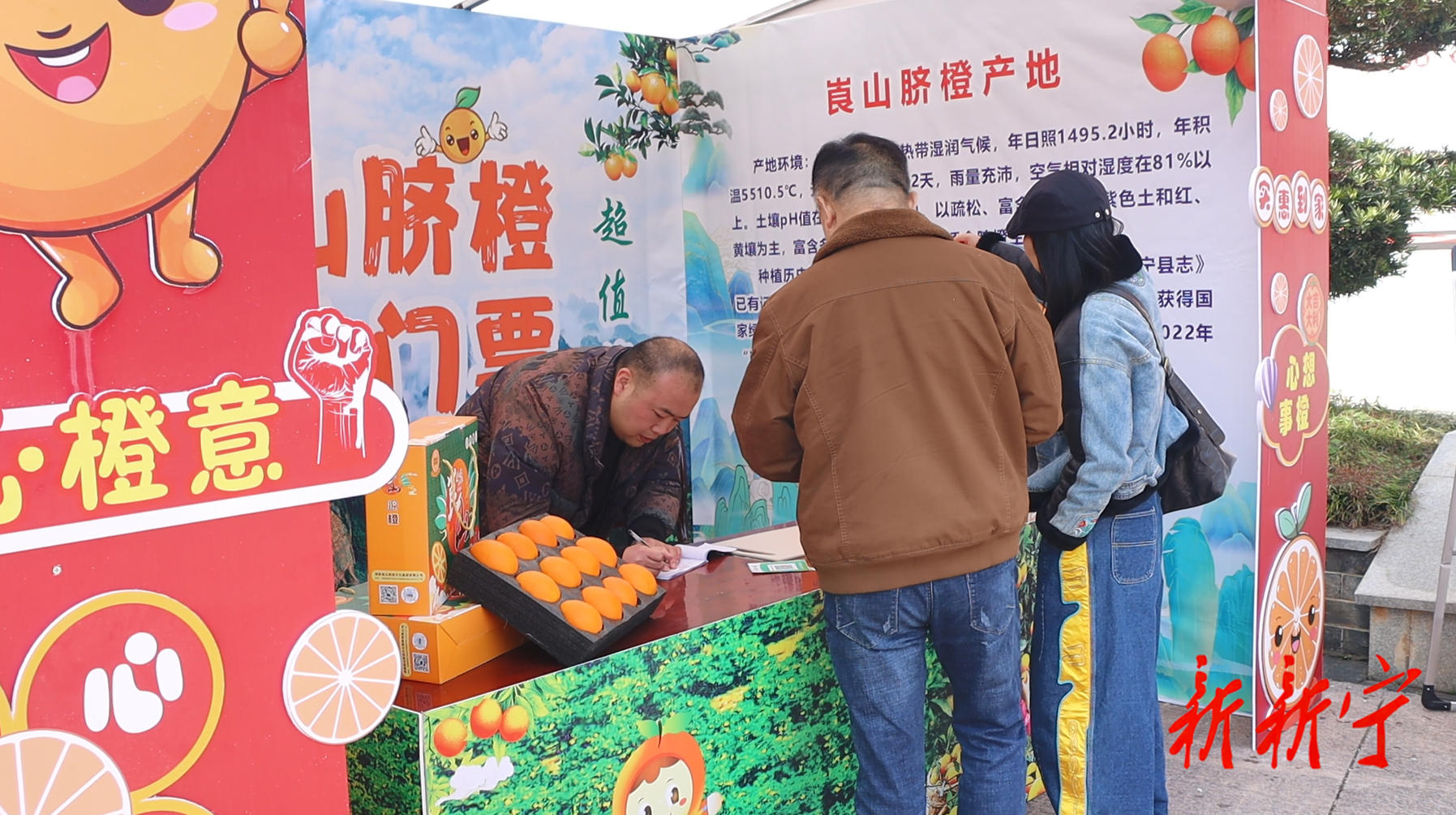 12月15日,在崀山北大门游客中心,一场名为“购崀山脐橙享门票优惠”的旅游助农活动正式启动。活动现场,包装精美的脐橙一箱箱整齐摆放,与崀山的雄奇丹霞相映成趣,吸引众多游客驻足和购买。