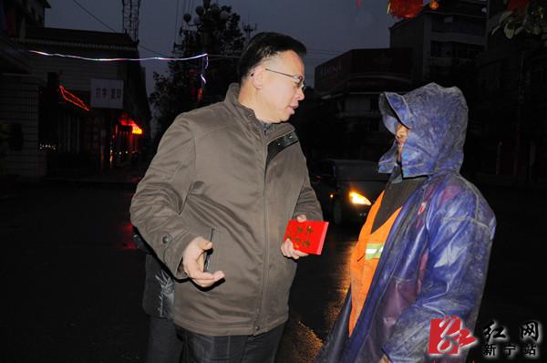 本网讯 (记者 杨坚 郑慧) 除夕凌晨,副县长林清华率队来到县城解放大道,给正在辛勤劳作的环卫工人拜年,并送上新年的祝福。