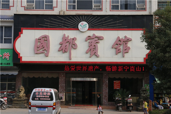 新宁县国都宾馆坐落于新宁县城中心区,位于崀山大道和春风路交汇处的崀山大道北段,阳光医院正对面。距洞新高速出口约5000米,车程约6分钟;距汽车西站300米,距崀山国际会展中心300米。从宾馆出发,前往崀山景区,只要十几分钟车程。酒店交通便利,设施齐全,环境优雅,是您旅游入住、洽谈商务的首选之地。