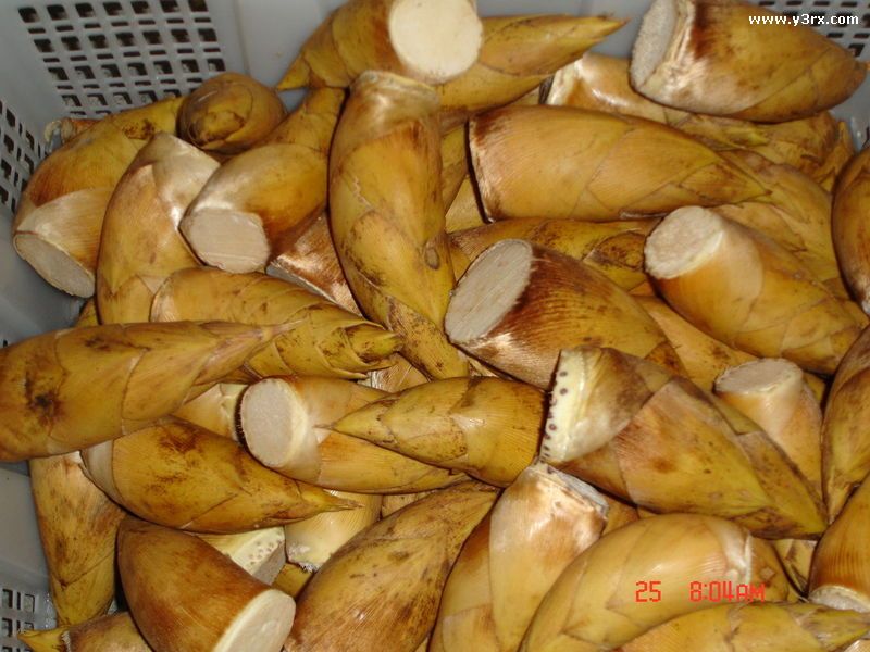 冬笋是毛竹冬季在地下生长的颜色洁白,肉质细嫩,味道清鲜的嫩笋,质量好的冬笋呈枣核形即两头小中间大,驼背鳞片,略带茸毛,皮黄白色,肉淡白色。冬笋素有“金衣白玉,蔬中一绝”之美誉。