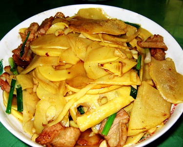 做菜时要注意炒冬笋的时候油温不要太热了,否则不能使笋里熟外白。