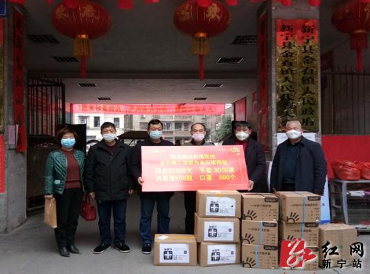 3、捐赠防疫物质价值149700元: 肖海波、肖坤军捐赠口罩34000个,5L酒精100桶,医用隔离面罩600只,500mL酒精300瓶,体温表700根,价值88000元;蒋禄赞捐赠口罩10000个,价值50000元;黎恢俭捐赠消毒液500瓶,价值5200元;金石商会捐赠手套2700双,价值3700元;刘银捐赠口罩500个,价值2500元。