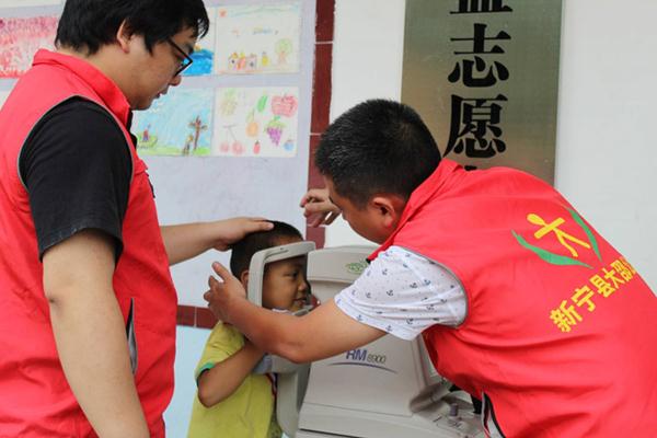 当天下午3点,志愿者们顶着烈日,推着仪器来到“儿童之家”。活动中,大邵公益会员单位——东方人眼镜有限公司的专业人员首先用仪器为孩子们进行了视力检测,并为孩子们建立了视力档案。