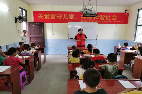 新宁县巡田乡龙宫村“儿童之家”由该村易文兵先生等爱心人士于2019年发起成立,今年1月12日正式运行,目前有留守儿童54名。该中心主要由湖南阳光社会工作服务中心负责项目运行、评估,村委负责监督管理,大邵公益负责组织开展志愿服务活动,旨在通过整合更多社会资源为乡村儿童及家庭提供更多关爱和社会支持,进而推动乡村振兴建设。