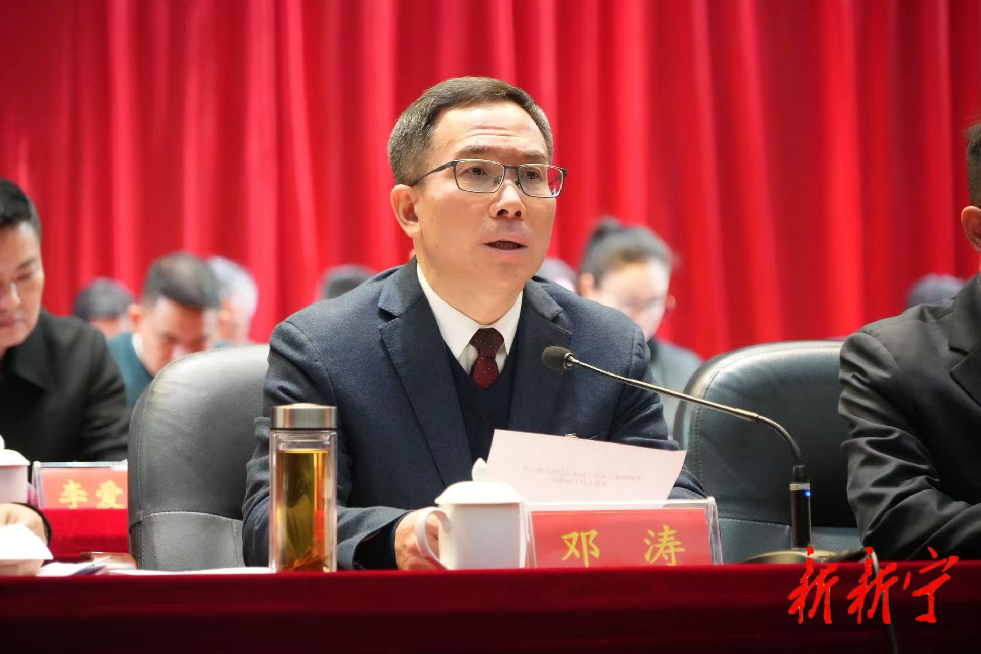 市人大常委会副主任、县委书记邓涛代表中共新宁县委向大会的召开表示热烈祝贺,向全体政协委员和与会同志致以诚挚问候。他说,2025年,全县上下坚持以习近平新时代中国特色社会主义思想为指导,深入贯彻党的二十大和二十届历次全会精神,以及习近平总书记关于湖南工作的重要讲话和指示批示精神,锚定“三高四新”美好蓝图,认真贯彻落实党中央决策部署和省委、市委工作要求,迎难而上、奋力拼搏,全力稳定经济运行,巩固了向好态势;持续深化改革,释放了机制活力;聚力推进产业建设,提升了链群能级;切实办好民生实事,增进了群众福祉;从严加强作风建设,优化了政治生态,经济社会发展取得了新成效。一年来,全县各级政协组织和广大政协委员牢牢把握团结和民主两大主题,聚焦县委、县政府中心工作,不断提高政治协商、民主监督、参政议政水平,为全县经济社会高质量发展作出了“政协贡献”。