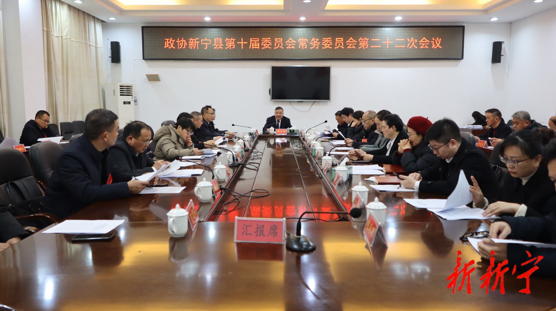 1月20日,县政协党组书记、主席徐立华主持召开政协新宁县第十届委员会常务委员会第二十二次会议,县政协副主席王海林、邓艳玲、陈燕群、林小石、彭红艳及全体政协常委参加会议。