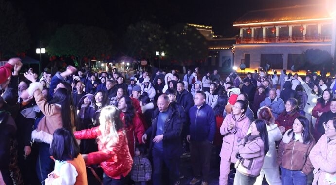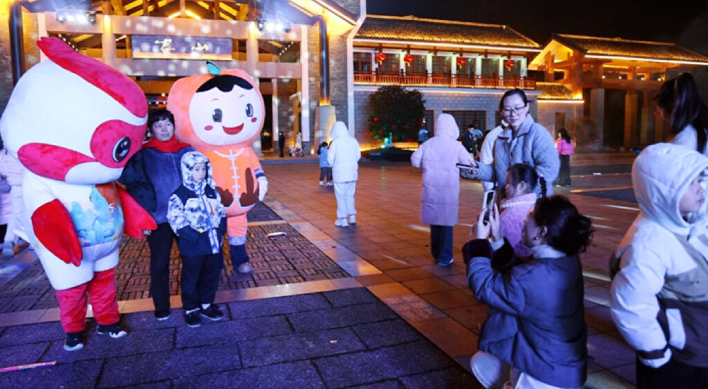 灯火璀璨迎新春。2月16日,一场融合传统民俗与现代科技的新春盛会在崀山北大门广场精彩上演,为市民和游客献上了一份别开生面的“文化年夜饭”。
