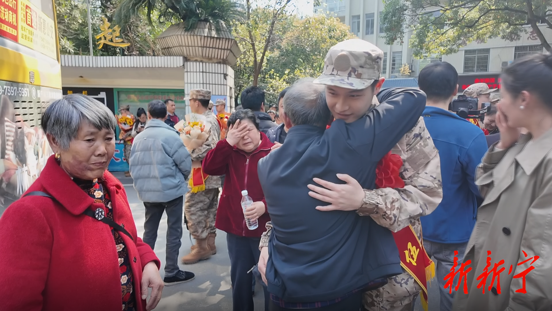 欢送仪式结束后,新兵队伍迈着铿锵步伐,开启“全城送兵”巡游活动,沿途市民群众自发聚集在道路两侧,挥旗欢送,敬献鲜花和热茶,处处洋溢着尊崇与荣光。临别之际,新兵与家人深情相拥、互致叮嘱,在不舍与骄傲的目光中,踏上保家卫国的新征程。