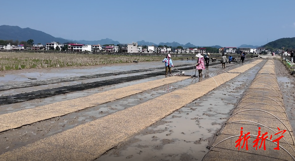 3月16日,记者在崀山镇窑市村、六坪村的田间地头看到,农户们三五成群,俯身劳作,育苗盘、撒良种、施基肥,动作娴熟。湿润的泥土被翻出阵阵清香,人与土地的默契交织,绘就出充满希望的春日农耕画卷。