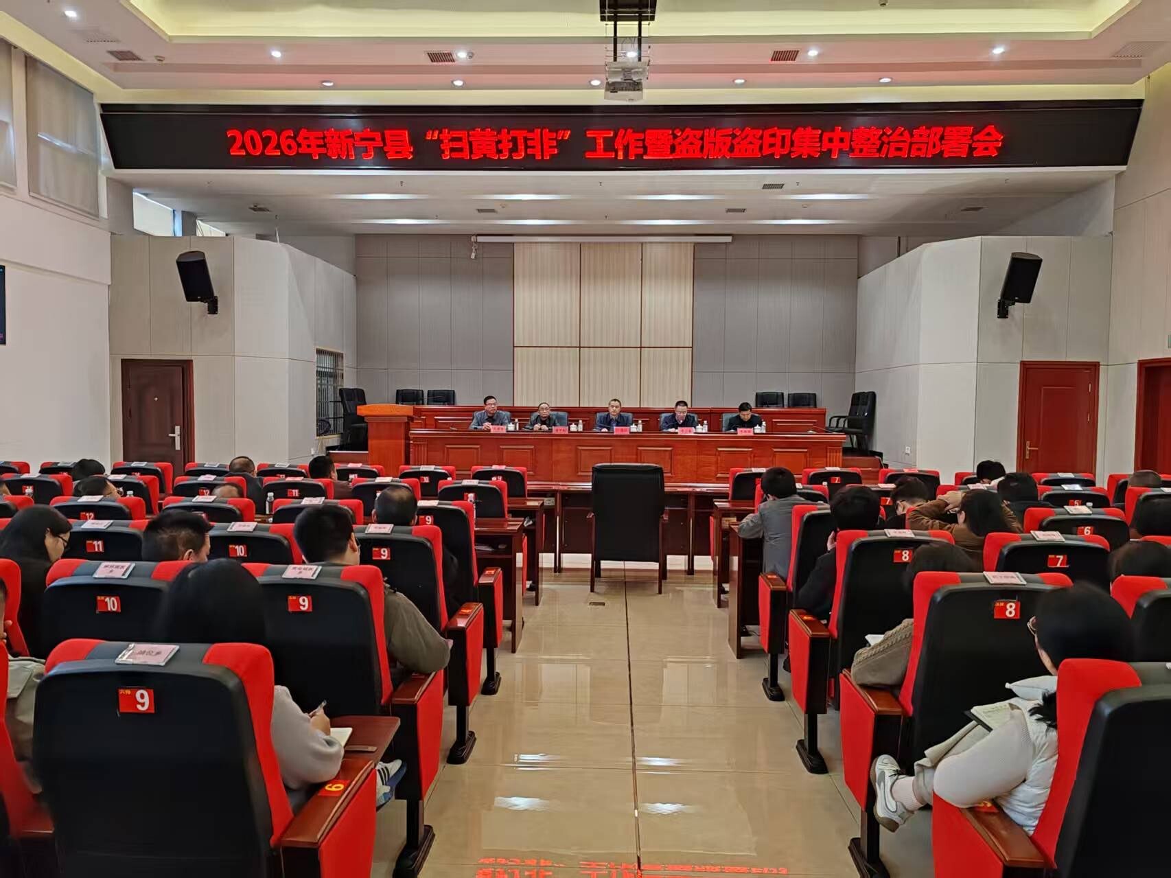 会议传达学习了省、市“扫黄打非”工作会议和专题会议主要精神,解读了《2026年新宁县“扫黄打非”工作暨盗版盗印集中整治工作方案》,对下一阶段重点工作进行安排部署。