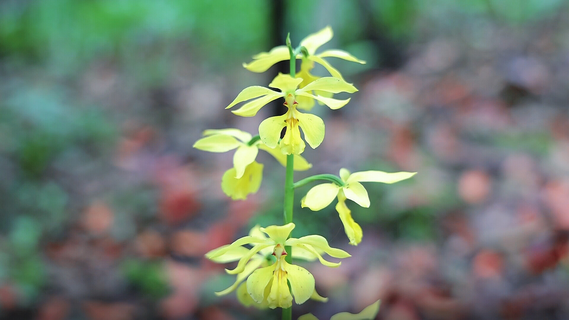 崀山风景名胜区管理局资源管理和遗产保护科 刘小兵:我们在2017年在崀山景区发现了大黄花虾脊兰野生种群,当时数量不足50株。我们通过人工授粉成功培育出大黄花虾脊兰组培苗,同时我们积极推进种群重建工作,现在已成功驯化培育出500余株,物种保护工作取得了阶段性成效。