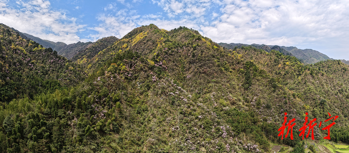 盛放的花丛自山脚绵延至海拔千米处的山腰,顺山势蜿蜒起伏,宛如浩瀚的紫色海洋。